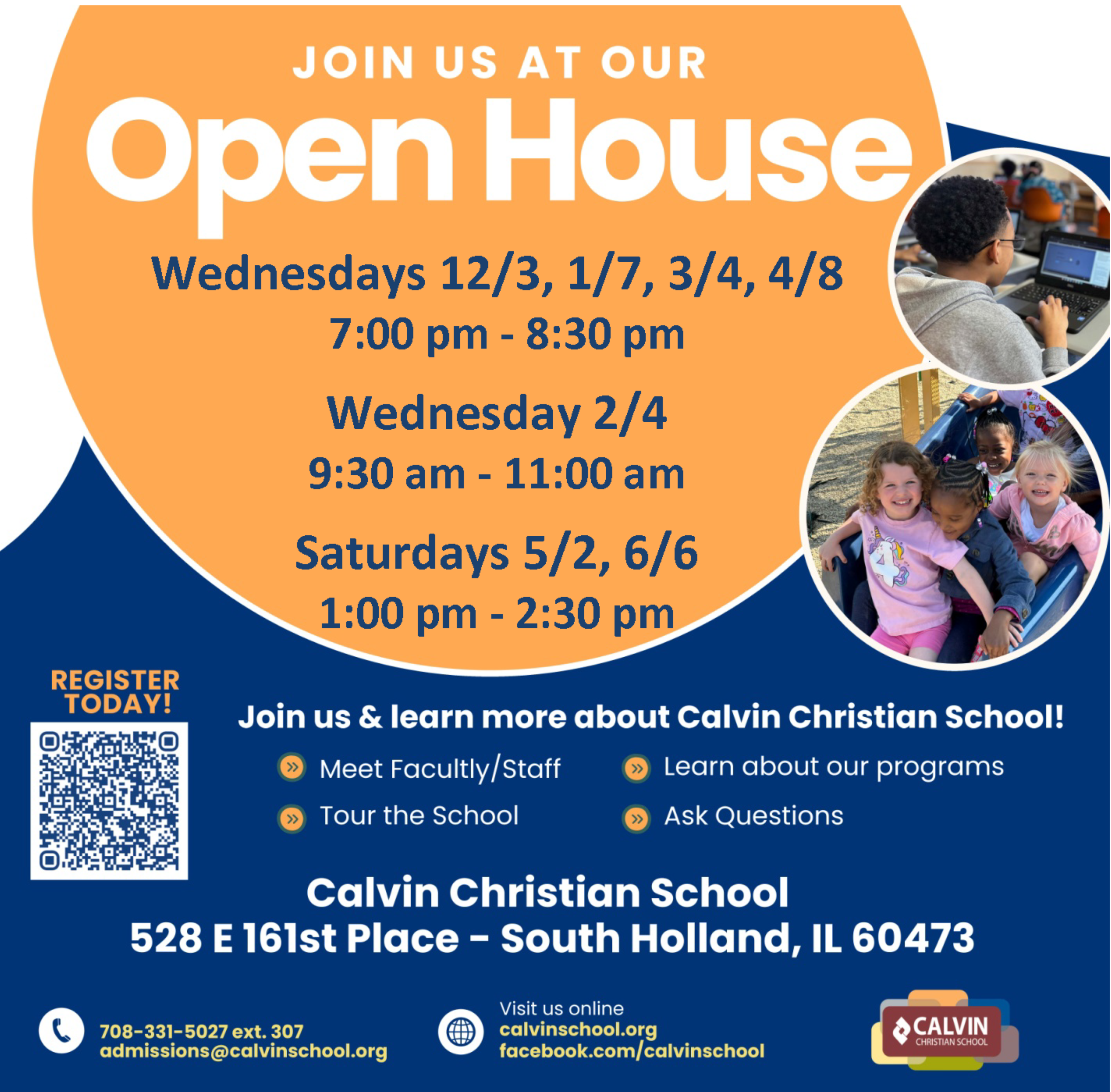 Every child is created with purpose and potential—and at Calvin Christian School, we help that story unfold. Here, students grow in wisdom and faith, guided by teachers who see them as God’s unique creation. Join us for our Open House and see how Calvin can partner with your family in shaping a strong foundation for life and faith.